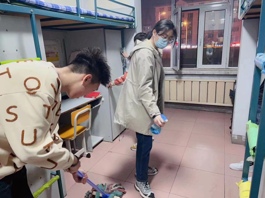 在深入学生公寓的过程中,辅导员老师们对所分管的各个学生寝室进行了逐一消毒和消杀工作,并重点针对寝室卫生和寝室安全等进行了检查和督促,提醒同学们要勤洗手、多通风、勤消毒,要长期保持干净整洁的寝室环境,同时,辅导员还及时掌握了学生在寝室的学习、生活和思想状态等,切实帮助同学们解决了实际困难和诉求。