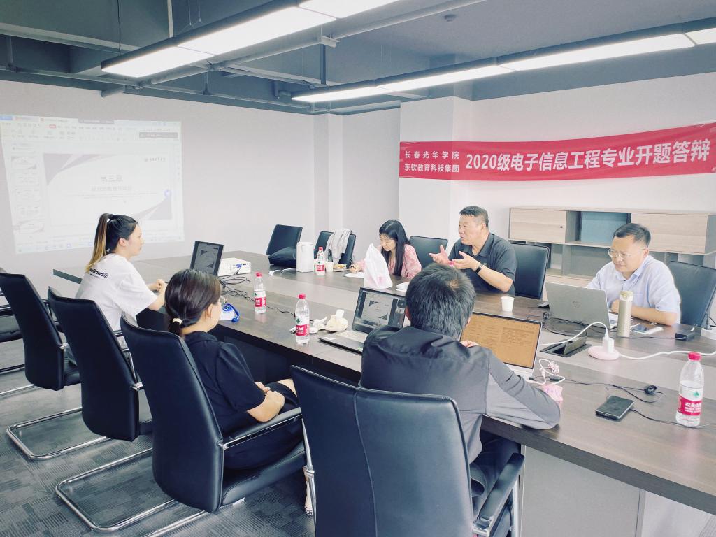 在进行开题答辩前,电子信息工程专业与数字媒体技术专业系主任与企业老师一同在5月20日-21日以线上方式进行了毕业设计开题动员会,细致讲解了毕业设计选题的要求与方向,并部署了毕业设计相关工作安排。随后,由学生自行进行毕业设计选题,由企业老师进行题目初审,由校方老师进行题目二审,审题结束后进行开题答辩工作。6月6日-7日,毕业设计开题答辩采用线上线下相结合的方式进行,电子信息工程专业系主任卢秀和、数字媒体技术专业系主任李倩亲自前往湖州实训基地进行线下答辩,其余在校答辩组老师针对学生汇报内容和开题报告文本内容进行了线上提问,并从选题的实用性、理论依据和内容之间的逻辑关系及研究方法的合理运用等不同方面提出了建设性的意见和建议,帮助同学们进一步明确了研究目标,理清了研究思路,为下一步毕业设计的制作与论文的撰写指明了方向。经过老师们的耐心指导,答辩现场每一位同学都对自己的选题有了更加清晰的理解,提前精心为开题答辩制作了PPT,并主要从研究背景及意义、国内外研究现状、论文研究方法、论文提纲等方面进行了开题论述。