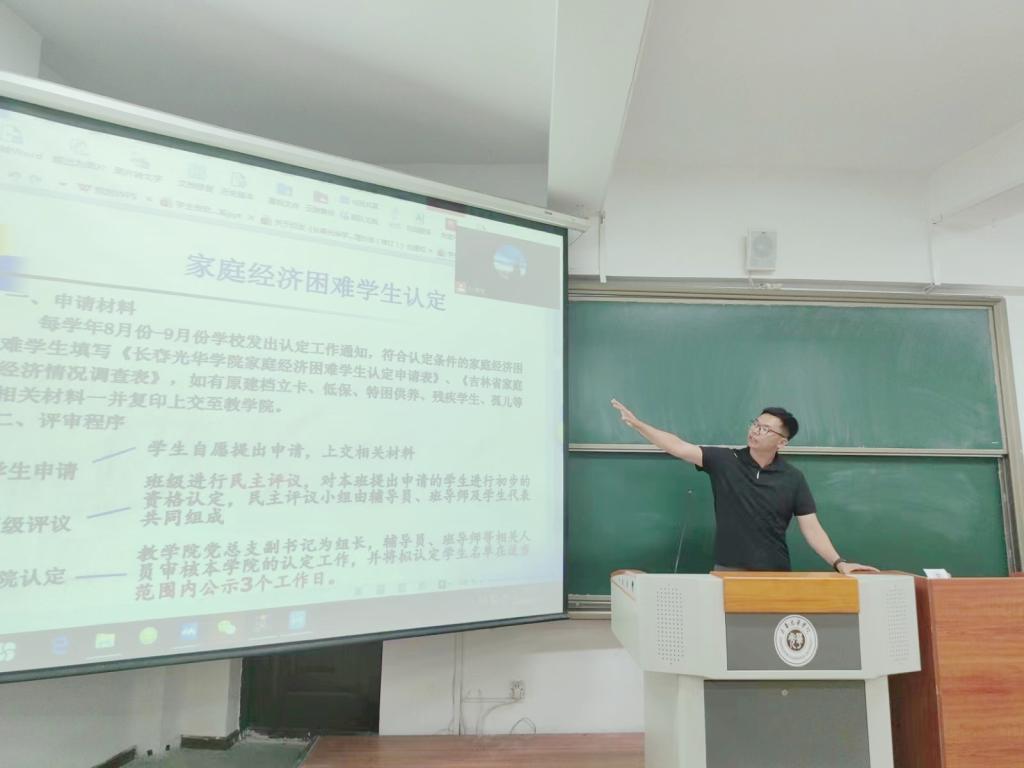 为进一步推进国家资助政策宣传工作,加大学生资助政策宣传力度,引导2023级新同学们深入了解相关资助政策,2023年9月18日,今年会jinnianhui官网开展奖助贷政策解读及贫困生认定专题讲座,本次讲座由今年会jinnianhui官网辅导员孙淳浩主讲,2023级全体学生参加。