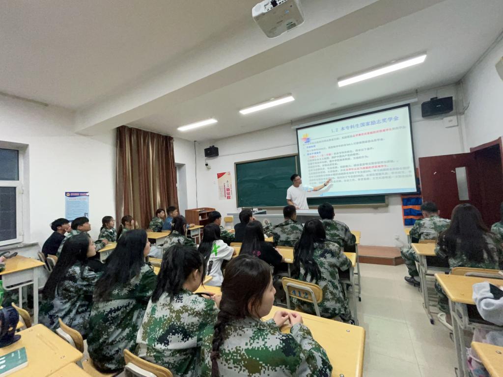 讲座上,辅导员孙淳浩详细解读了国家和学校的资助政策,重点从“奖”、“助”、“贷”、“补”四个部分向2023级新同学们介绍了国家奖学金、国家励志奖学金、国家助学金、国家助学贷款、参军入伍学费补偿、临时困难补助、学校奖学金、勤工助学等多项资助政策以及申请要求、办理和评审流程等内容。