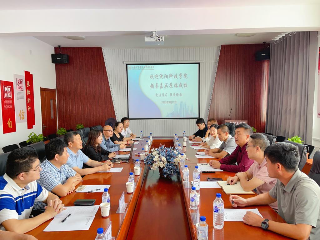 王鸿鹏副校长介绍了沈阳科技学院的办学规模、教学成果、产教融合等方面的情况,对我校教学环境、教学服务、产学研发展建设等方面表示高度赞赏,对我校的办学特色和教学成果等方面给予了充分肯定,希望未来能够与我校进一步加强交流沟通、共促发展,同时邀请我校领导及老师前往沈阳科技学院参观交流。