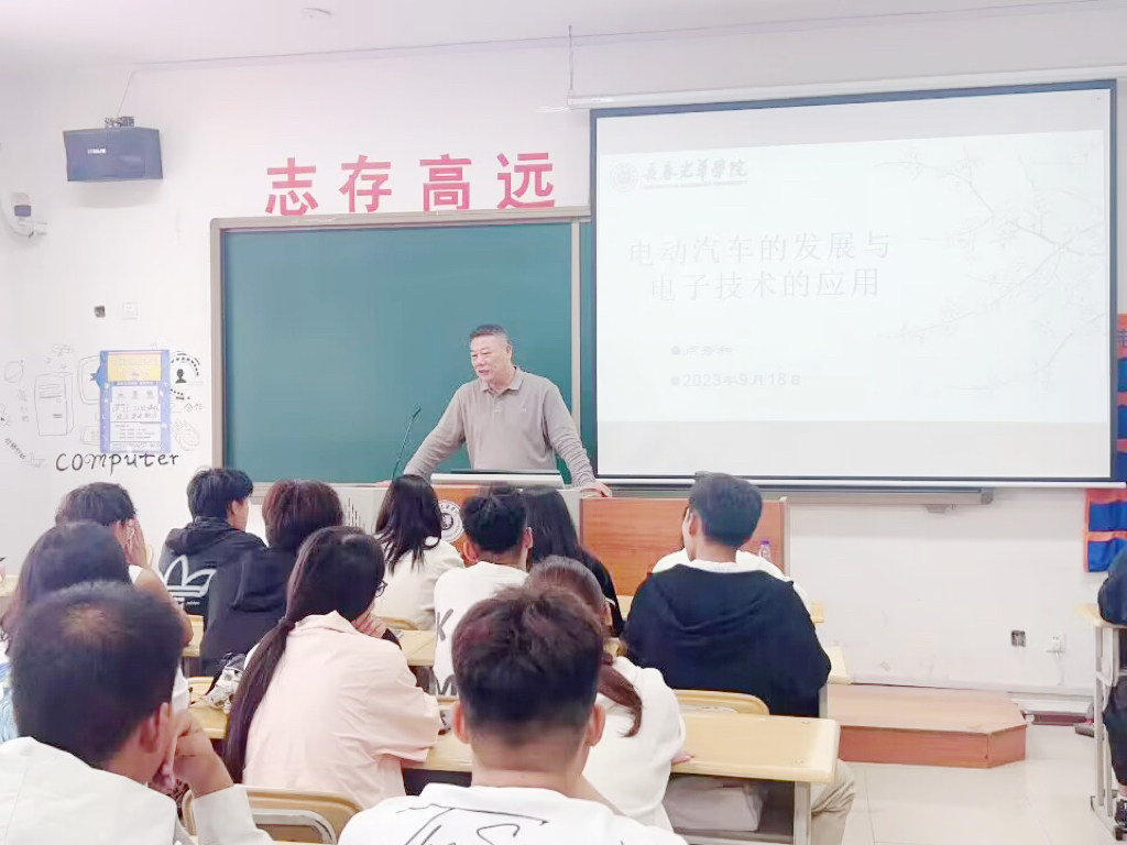 报告会最后,卢秀和主任重点结合“汽车电子”专业方向,对电动汽车的发展趋势、电子技术应用的内涵外延等做了一个引导式的讲解和说明,并以车载动力驱动控制系统为例,具体展开说明了电控系统的构成、相关专业知识的支撑、电子技术的应用等内容,对同学们深入了解专业内涵、认知社会需求、体味高新技术等起到了一个抛砖引玉的作用。