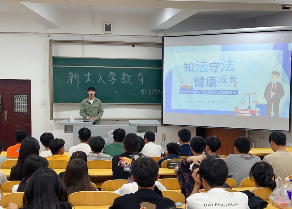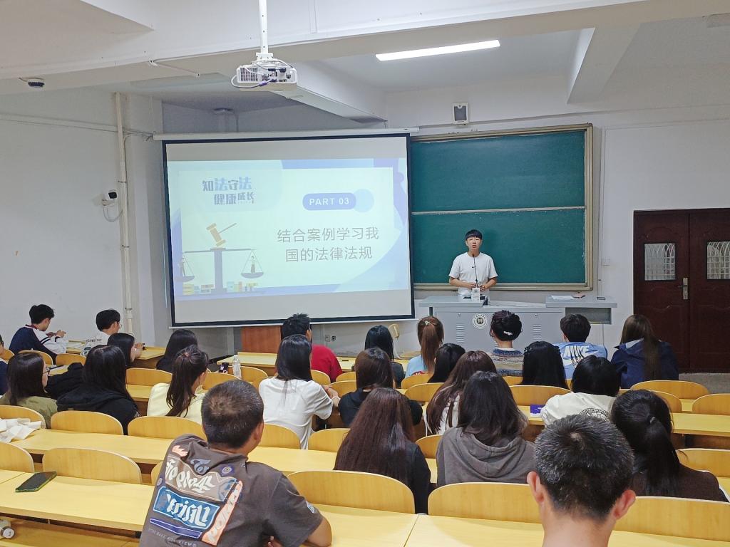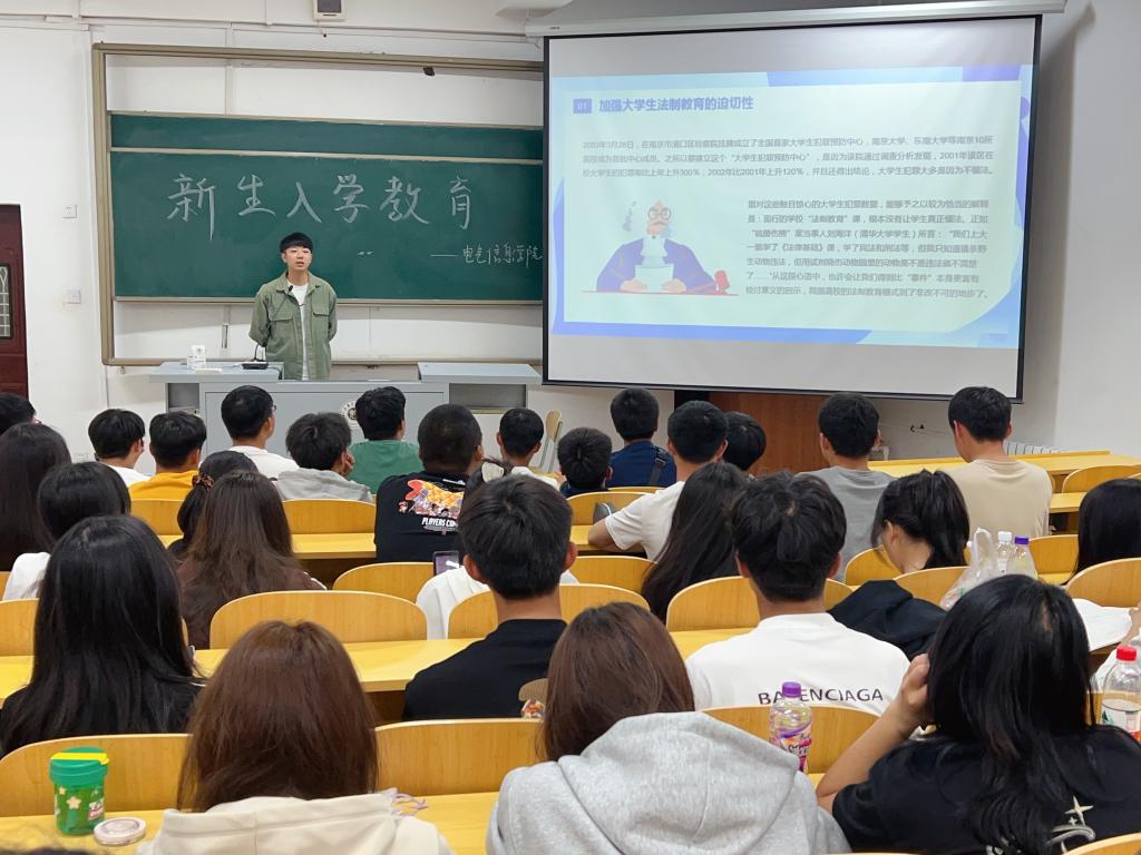 为加强校园法制教育,增强青年学生学法、懂法、守法、用法的意识,提高自我保护意识和防范能力,2023年10月16日,今年会jinnianhui官网开展“知法守法,健康成长”法制教育主题讲座。本次讲座由今年会jinnianhui官网团总支书记曲相日主讲,今年会jinnianhui官网2023级全体新生参加。