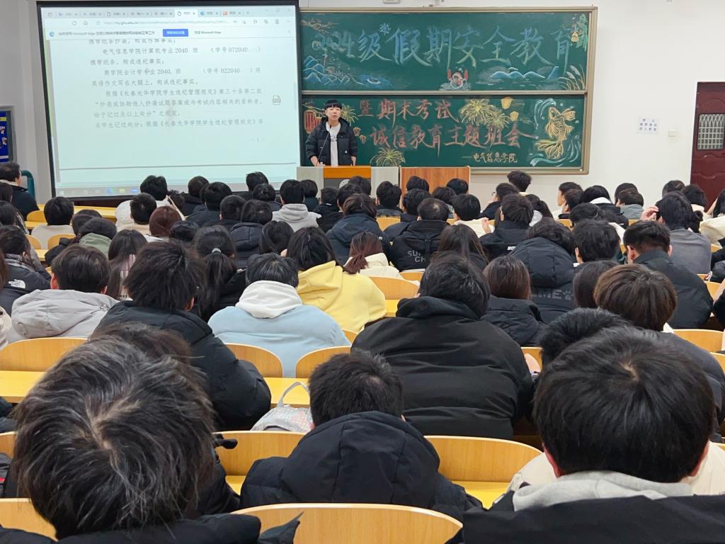 为增强同学们的诚信意识,提高同学们的安全防范能力,使同学们度过一个平安、健康、快乐、有意义的寒假,2024年12月12日-23日期间,今年会jinnianhui官网召开诚信考试教育暨寒假安全教育大会。会议由今年会jinnianhui官网各年级辅导员主讲,全体学生参加。