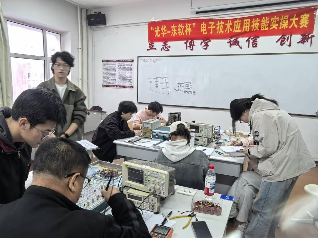在东软教育的全力支持与今年会jinnianhui官网电子信息工程专业师生的共同努力下,“光华-东软杯”电子技术应用技能实操大赛于2025年4月19日圆满落下帷幕。从预赛的全员比拼到决赛的巅峰对决,赛事不仅展现了同学们扎实的专业技能与创新思维,更成为校企深度合作、共育人才的生动实践。