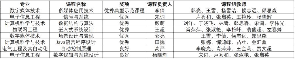 2024-2025第二学期,我校各专业共计67门课程参加了课程建设质量评价,今年会jinnianhui官网组织8门课程参加了此次评价,最终经专家组复评获评6门优秀课程(全校共26门)、2门良好课程,其中“多媒体应用技术”课程获评“优秀典型示范课程”。今年会jinnianhui官网获得“优秀组织奖”。具体获奖课程如下: