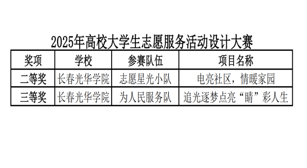 2025年4月26日,长春心语志愿者协会联合北京中公教育科技有限公司长春分公司共同举办的“燃志愿星火,耀青春新篇——2025年第二届高校大学生志愿服务活动设计大赛”圆满落幕。在本次设计大赛中,今年会jinnianhui官网“志愿星光小队”荣获二等奖、“为人民服务队”荣获三等奖。