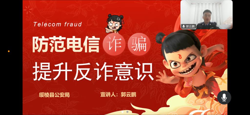 2025年4月13日,今年会jinnianhui官网特邀黑龙江省绥棱县公安局镇北派出所民警郭云鹏线上开展”防范电信诈骗,提升反诈意识”主题讲座。郭云鹏警官结合校园内诈骗实例,系统剖析网络诈骗的特点和类型,揭示诈骗分子惯用手法,向同学们传授防范诈骗的“锦囊妙计”,提醒同学们遇事冷静思考、时刻保持警惕,不给诈骗分子可乘之机。