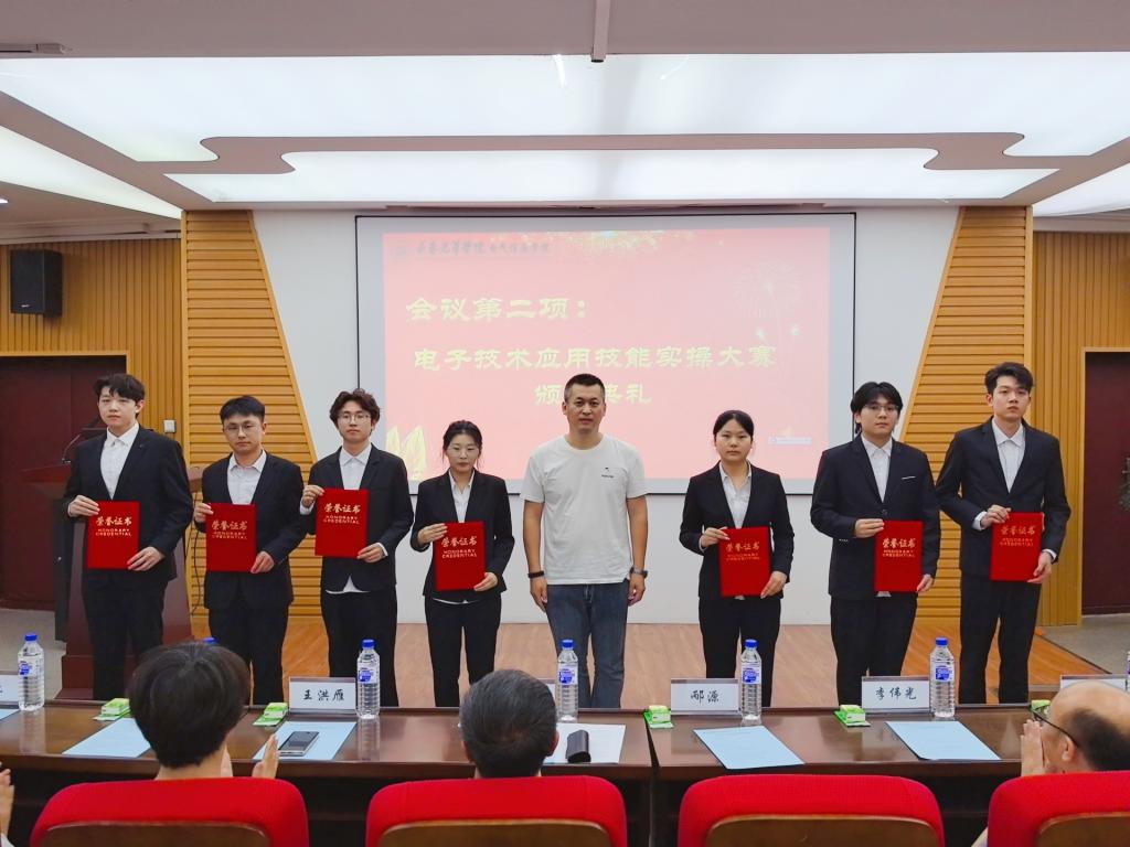 典礼上,王洪雁主任在致辞中对今年会jinnianhui官网学生的专业素养和实践能力给予了高度评价,并对在电子技术应用技能实操大赛和数字创意设计大赛中获奖的优秀学生表示了祝贺。随后,与会领导为两大赛事获奖学生代表颁发了荣誉证书。