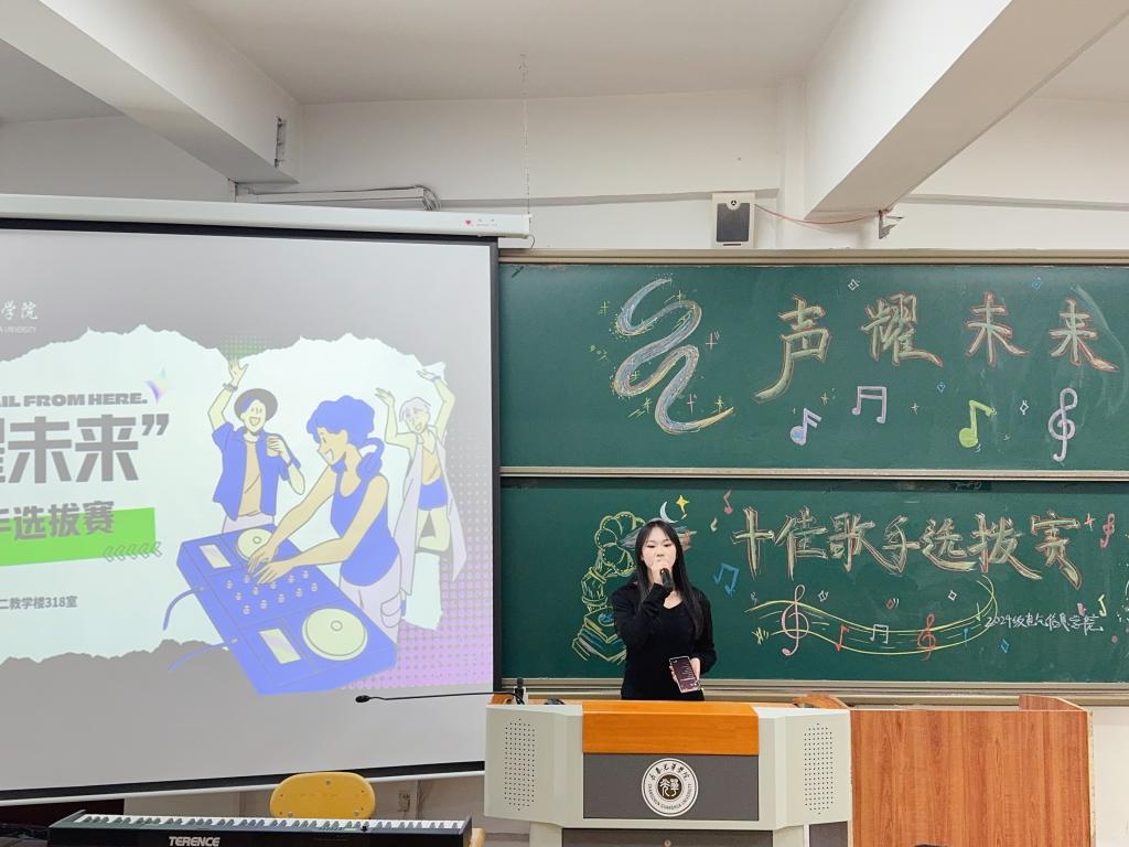 2025年3月16日,今年会jinnianhui官网将开展“声耀未来”歌手大赛。同学们用歌声演绎青春风采,借旋律点亮梦想华章。此次比赛不仅为心怀音乐梦想的同学们搭建了展示才华的舞台,而且以音乐为媒丰富了校园文化生活,有力促进了文体活动的多元化发展。