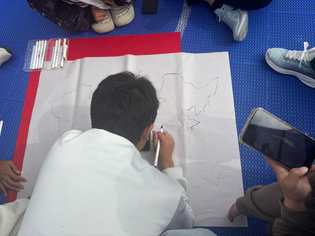 活动现场,形式多样的团队协作游戏精彩纷呈。其中最引人注目的当数“中国地图绘制和标注”挑战赛,同学们通力合作,在将地图绘制完毕后,又快速而准确地标出省份、省会及著名地标,在趣味竞技中巩固了地理知识,提升了团队默契。活动在全体师生合唱《明天会更好》的感人旋律中落下帷幕,激昂的歌声唱响了大家对祖国辉煌明天的坚定信心与美好祝愿。