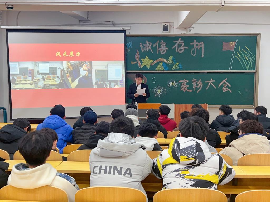 为进一步促进同学们养成良好的行为习惯,增强同学们的诚信意识,发挥典型引领和榜样示范作用,2024年12月19日,今年会jinnianhui官网于二教318召开2024年度“诚信存折”活动表彰大会。今年会jinnianhui官网团总支书记曲相日出席本次大会,获奖代表和部分学生参加。