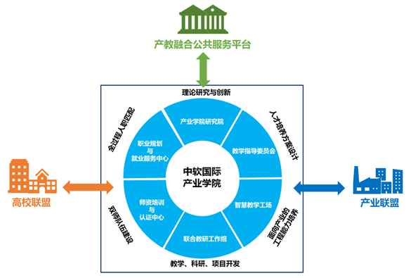 以教育部《现代产业学院建设指南(试行)》精神为指导,分析新工科的发展指向,以培养应用型人才为宗旨,立足吉林省及东北地区,瞄准与地方经济社会发展和产业布局的结合点,以物联网、大数据、智能终端、软件技术等新一代信息技术产业为牵引,以计算机科学与技术、物联网工程等专业为基础,与中软国际有限公司共建融合跨学科专业集群发展为特色的产业学院,充分发挥双方教育资源的优势,深度挖掘产业学院已积淀的学科专业特色和良好的基础条件,努力建设融人才培养、科学研究、技术创新、企业服务、学生创业等功能于一体的示范性产业学院基地,促进物联网、计算机技术人才链与新一代信息技术产业链的有机衔接。