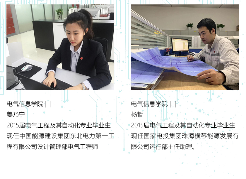 本专业毕业生就业领域主要集中在电力系统、电气设备制造、系统集成、建筑电气、科研院所、教师及公务员等行业,就业质量较好,用人单位对毕业生的知识结构、工作能力及综合素质等方面均给予了高度的评价。许多毕业生经过经过几年的工程实践已成为本行业的技术或管理骨干。